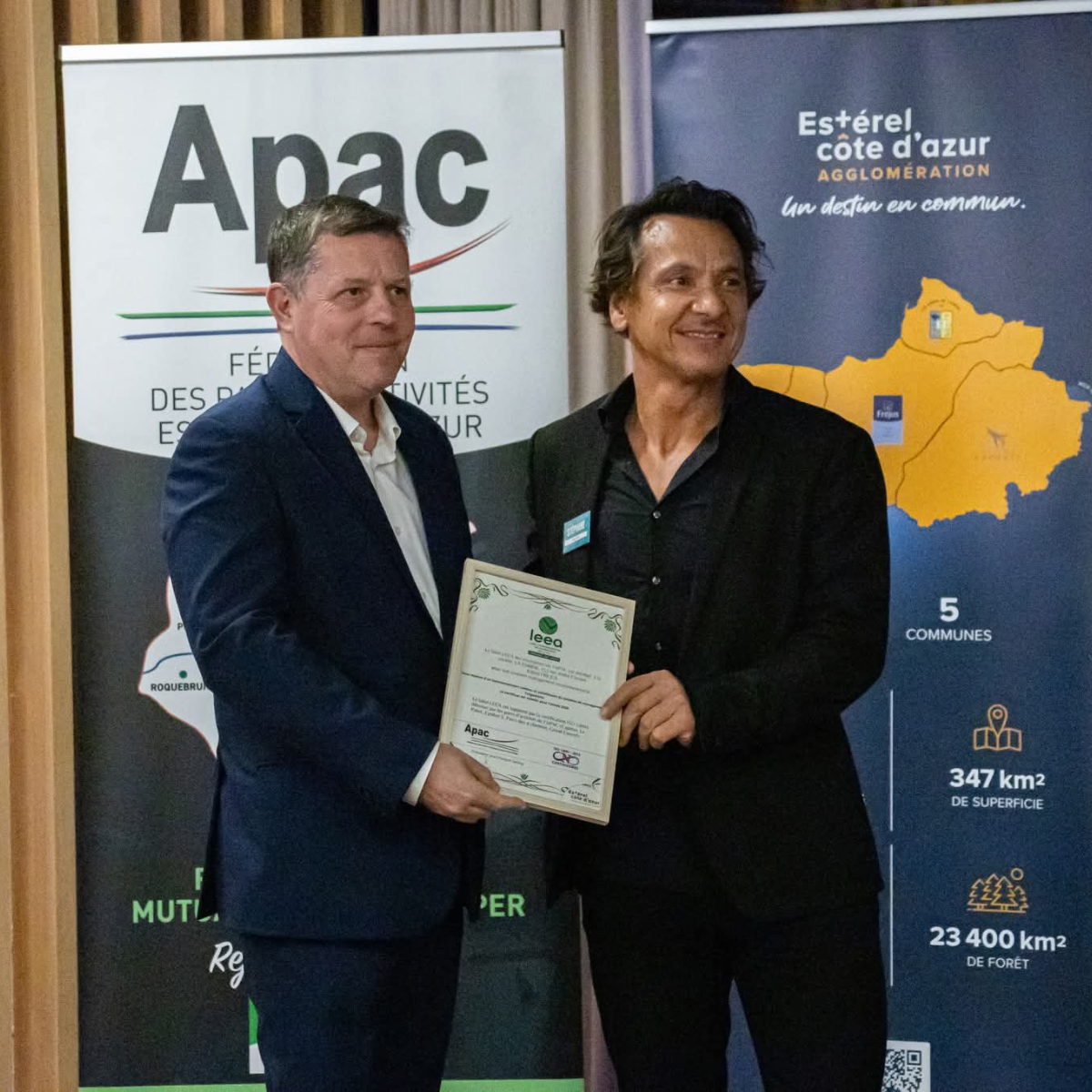 La soirée a été rythmée par la remise du label LEEA à 2 nouvelles entreprises, La Fabrik & Planisphère Info, basées à la Palud, par le président d’Estérel Côte d’Azur Agglomération, Frédéric Masquelier.